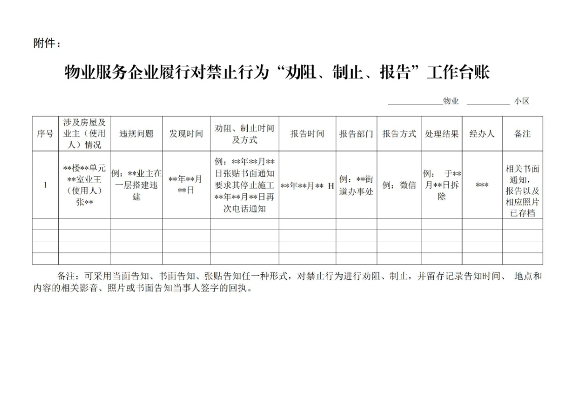 关于印发《物业服务企业履行对禁止行为“劝阻、制止、报告”工作台账》等示范文本的通知