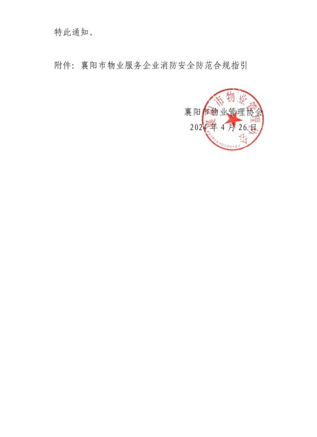 关于印发《襄阳市物业服务企业消防安全防范合规指引》的通知