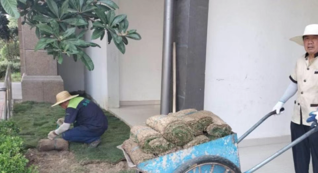 草坪焕新 绿化升级:本次铺种草坪涵盖1号楼南侧、2号楼东侧,园区绿道3处,共计90平方米,除了本次铺种的草坪,后期还会在园区草地上种上各种花卉点缀,让草地成为小区的 "颜值担当"。