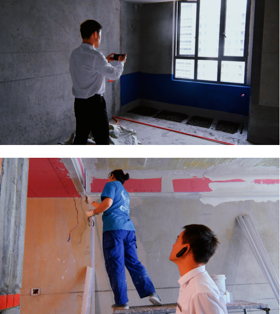 当然,最牵动业主心弦的,始终是自家装修的点滴进展,这也正是力生汉江樾专属管家团队的核心使命。自装修启动首日,管家们便化身“楼宇巡航员”,每日逐层巡查装修现场,从水电改造到木工收口,全程跟进施工细节。