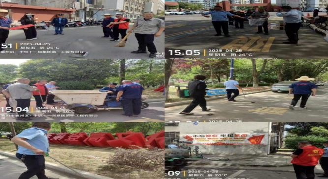 社区作为居民生活的基本单元,其环境卫生状况直接关系到居民的生活质量和身心健康,随着人们生活水平的提高,对于居住环境的要求也随之提升。为营造一个干净、整洁、舒适的生活环境,提升小区居民的居住品质和幸福感,推进国家卫生城市巩固工作,建设文明健康和谐美好家园,2025年4月25日,鑫盛鼎物业公司铁十一局项目联合光荣路社区、城管三方联合来一次对小区“洁城行动”大扫除活动。