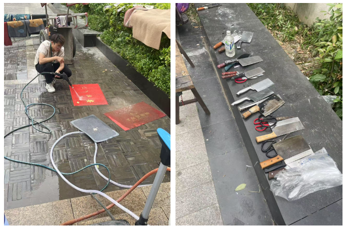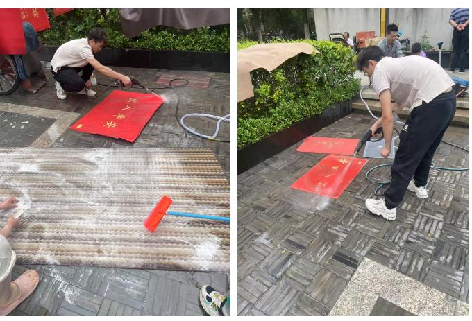 活动现场,洗地毯区域早早地就热闹起来。物业工作人员们化身成了 “清洁魔法师”,他们熟练地操作着专业的地毯清洗设备,高压水枪中喷射出的强劲水流,如同灵动的水蛇,欢快地穿梭在地毯的纤维之间,将深藏其中的污垢与尘埃一扫而空。随后,工作人员又拿起软刷,细致入微地擦拭着地毯的每一寸表面,动作轻柔而专注,不一会儿,原本脏兮兮的地毯就焕然一新,在阳光下闪烁着洁净的光芒。居民们围在一旁,脸上洋溢着满意的笑容,不时发出阵阵赞叹。一位老奶奶看着自家那变得干净整洁的地毯,眼中满是欣慰,她感慨地说道:“年纪大了,自己洗地毯实在是力不从心,多亏了物业组织的这个活动,让我家的地毯又变得像新的一样!”