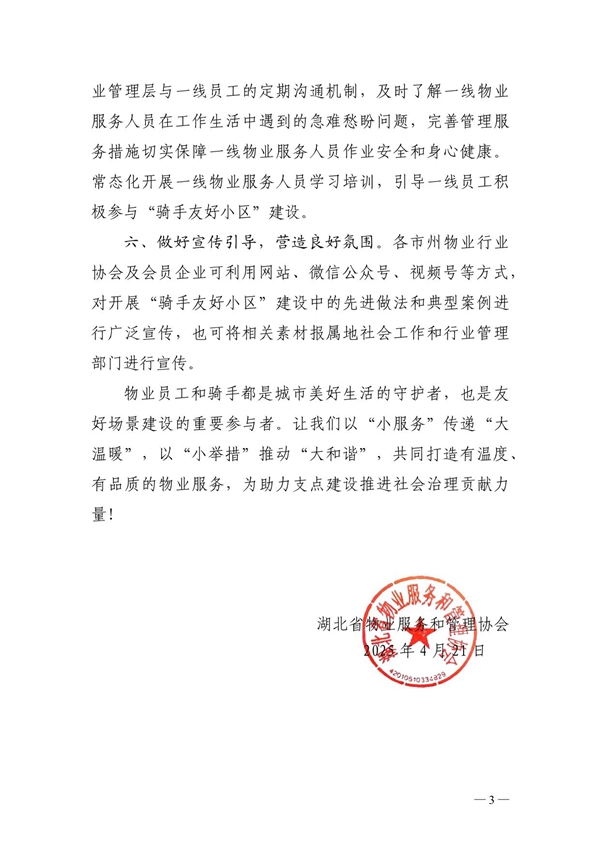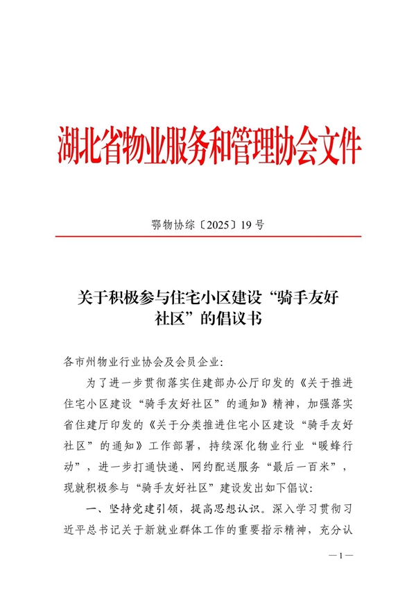 关于积极参与住宅小区建设“骑手友好社区”的倡议书