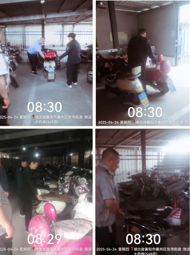 保安人员整顿车棚三车停放