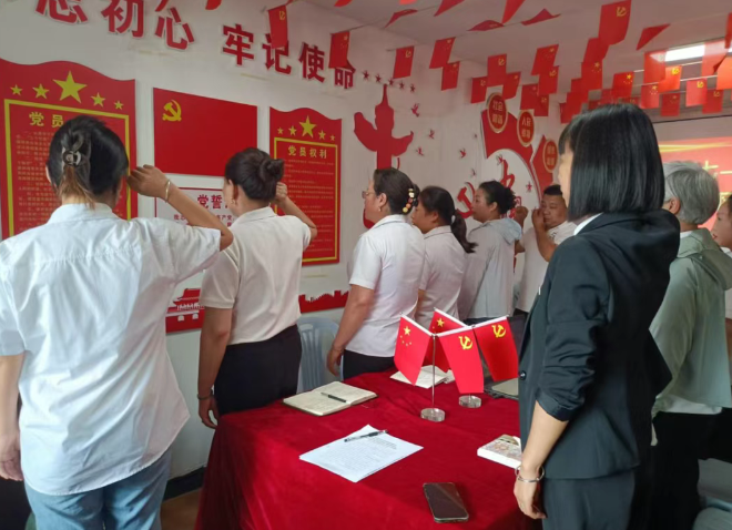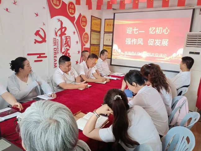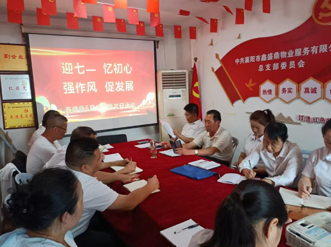 为庆祝中国共产党建党104周年,6月20日下午15点,鑫盛鼎物业公司全体党员、预备党员、入党积极分子,区委驻企业党建指导员在公司开展“迎七一 忆初心 强作风 促发展”主题党日活动。此次活动突出政治主题,强化党性修养。筑牢廉洁自律防线,通过主题党日、重温入党誓词、开展学习研讨、使大家提高政治理论素养,增强党性观念、宗旨意识和服务意识,进一步激励广大党员听党话、感党恩、跟党走的决心。
