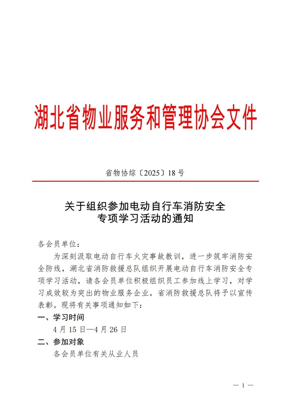 关于组织参加电动自行车消防安全专项学习活动的通知