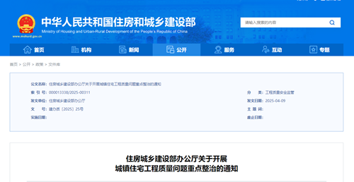 近日,住房城乡建设部办公厅近日印发通知,要求聚焦城镇住宅工程隔声、串味、渗漏等质量问题,开展重点整治。