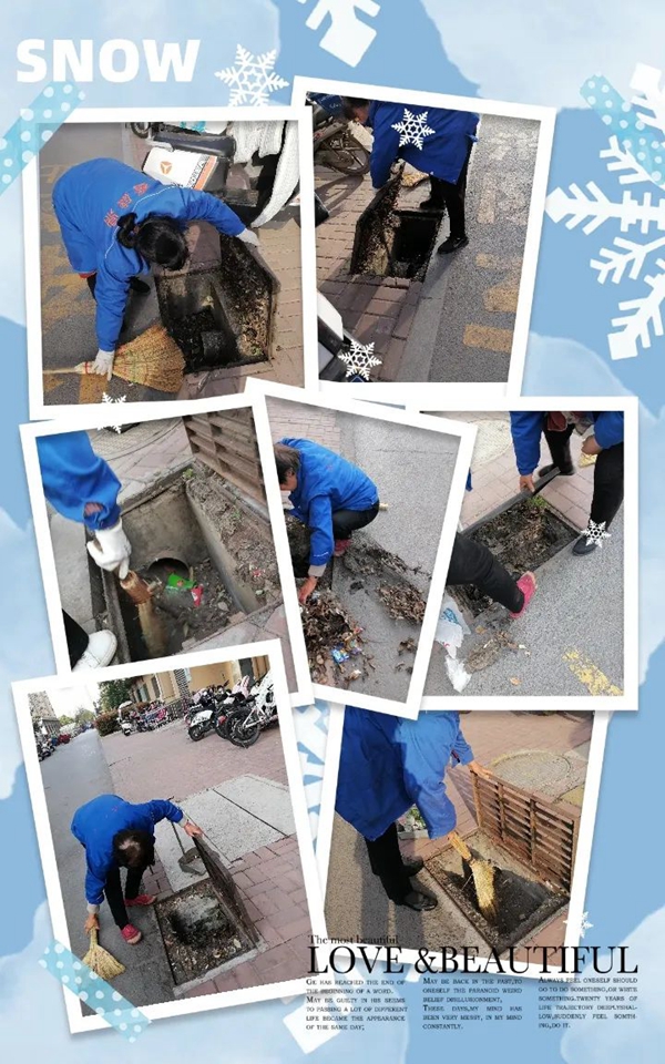 路边的雨水井,虽不起眼,但是它是排水系统的重要一环,随手扔的垃圾,掉落的树叶,长期沉淀,堆积就会造成堵塞,她们用镊子,将缝隙中的杂物夹出,再用铁锹清理周边堆积杂物,保障了排水系统畅通。扔下的是文明,捡起的是美德!