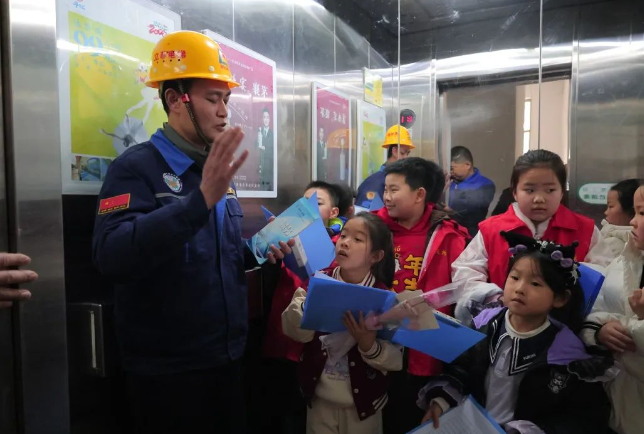 活动当天,一群活泼可爱的小巡查员在物业工作人员的悉心引领下,从物业服务中心出发,踏上了一段充满探索与发现的巡查之旅。第一站来到2号楼2单元电梯,物业人员详细讲解了电梯的安全使用知识以及日常维护要点,孩子们好奇地观察着电梯的运行部件,不时提出稚嫩却富有洞察力的问题。