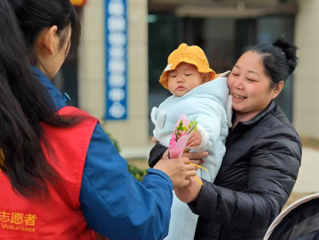 有些小朋友也跟着妈妈一起来到了活动现场,当物业人员及党员志愿者把花递给妈妈时,孩子们稚嫩的声音响起:“妈妈,节日快乐!”这一声声祝福让现场的氛围更加温馨。还有一些老年女性业主,她们接过花后,仔细端详着,仿佛手中的不是简单的鲜花,而是来自物业满满的敬意和关怀。老人们拉着碧桂园物业工作人员、碧桂园物业党员志愿者的手说:“你们想得真周到啊,现在住在这个小区真是太幸福了。”