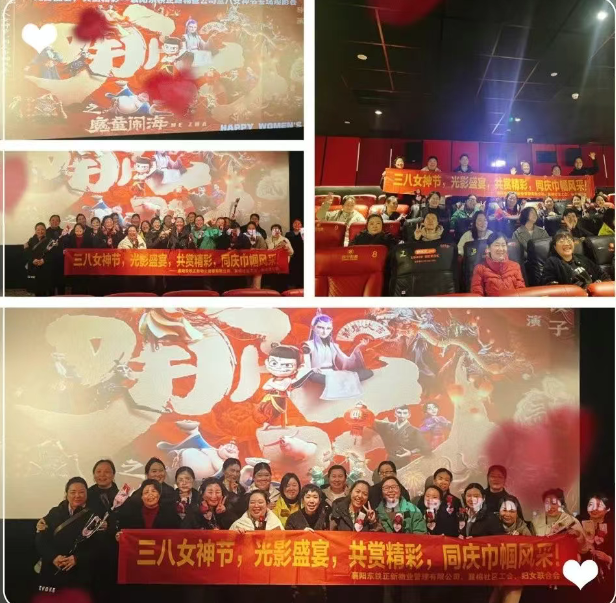 节日当天下午,襄阳东铁正新物管公司联合襄棉社区工会、妇女联合会一起,组织女性员工包场观看热映的《哪吒之魔童闹海》。当大银幕亮起的瞬间,女性员工们在光影交织中卸下疲惫,用欢声笑语编织成这个春天最动人的记忆。
