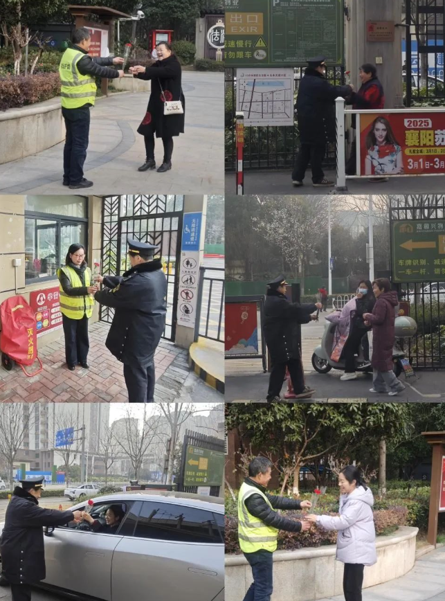 当天一大早,湖北嘉和兴物业的服务人员们就把准备好的鲜花拿到山水天成小区各出入口等待业主并向每一位进出小区的女神们送上最真诚的祝福。