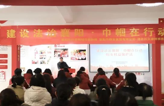 在第115个“三八”国际劳动妇女节来临之际,为进一步提升广大妇女群众的法律意识,增强广大妇女依法维护自身合法权益的能力。3月5日下午,襄阳市住房和城市更新局市物业管理有限公司联合湖北长久律师事务所在祥龙·公租房小区开展“建设法治襄阳·巾帼在行动”为主题的普法知识讲座,为单位女职工和辖区女性送上了一份“法治大礼包”。