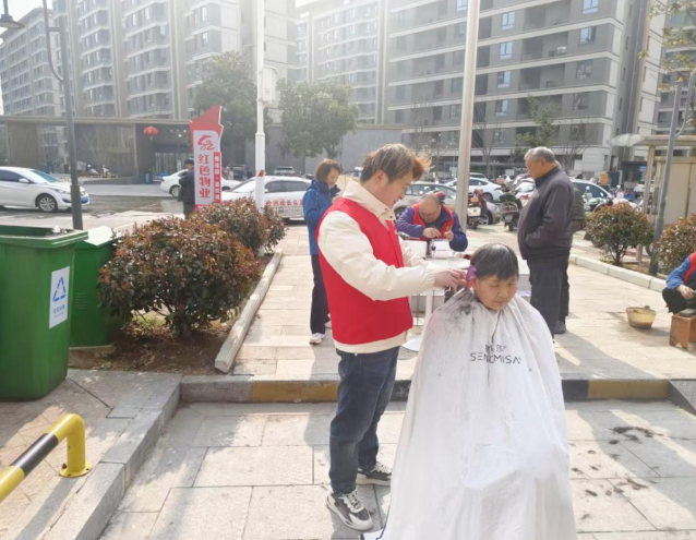 爱心义剪区:理发师志愿者巧手翻飞,为社区老人、孩童修剪出清爽利落的发型。