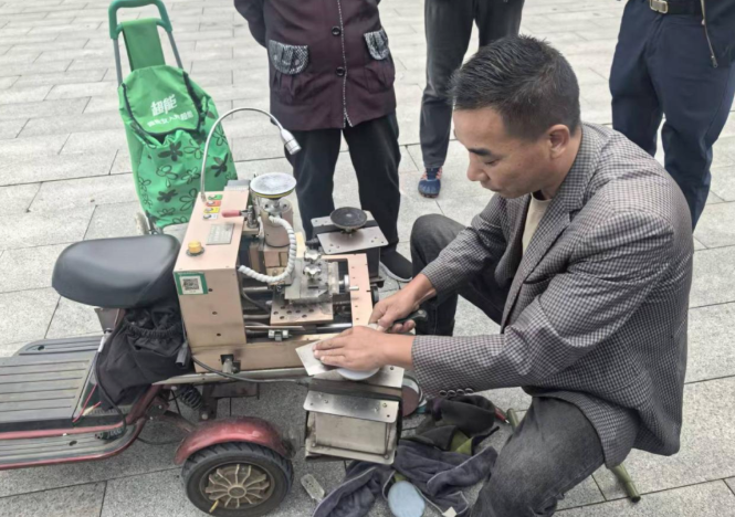 公益集市凝聚多元合力,江山馨园物业、东大肛肠专科医院、爱尔眼科、时代口腔、万顺骨科医院、御体堂中医诊所等10余家单位与企业携手参与,构建起“物业+社区+专业机构+爱心企业”的服务共同体。活动现场暖意融融,各服务专区前人流不断:健康服务专区堪称“人气焦点”,医护人员一边细致为居民测血压、查视力,一边针对肛肠养护、关节保健、中医调理等高频需求耐心答疑,还为老年居民定制健康建议,用专业守护筑牢健康屏障;邮政银行工作人员结合“虚假养老投资”等真实案例,通过发放宣传单、套圈互动、有奖问答等方式,手把手教老年居民识别诈骗套路,助力守住“钱袋子”;光明牛奶志愿者支起磨刀架,砂轮转动间,居民家中锈钝的菜刀、剪刀迅速恢复锋利;卡其优多功能清洁公司的服务台前排起小队,工作人员仔细为居民清洗运动鞋,从鞋面去污、鞋边去黄到鞋带消毒,每一步都做得一丝不苟;市家政协会&邻康智慧家政(湖北)有限公司”则围绕家庭清洁、日常家政服务等需求,提供咨询与优惠套餐,解决居民生活难题。
