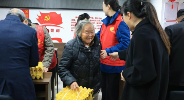 尊老敬贤,重在用心。活动的最后,也是最温情的环节,社区与碧桂园党支部特别为现场年满80周岁以上的高龄老人们准备了暖心的节日慰问品——鸡蛋和面粉。志愿者们将一份份满载着关爱与敬意的礼品送到老人们手中,并送上诚挚的节日祝福。老人们脸上洋溢着幸福的笑容,连连道谢,现场气氛温馨感人。