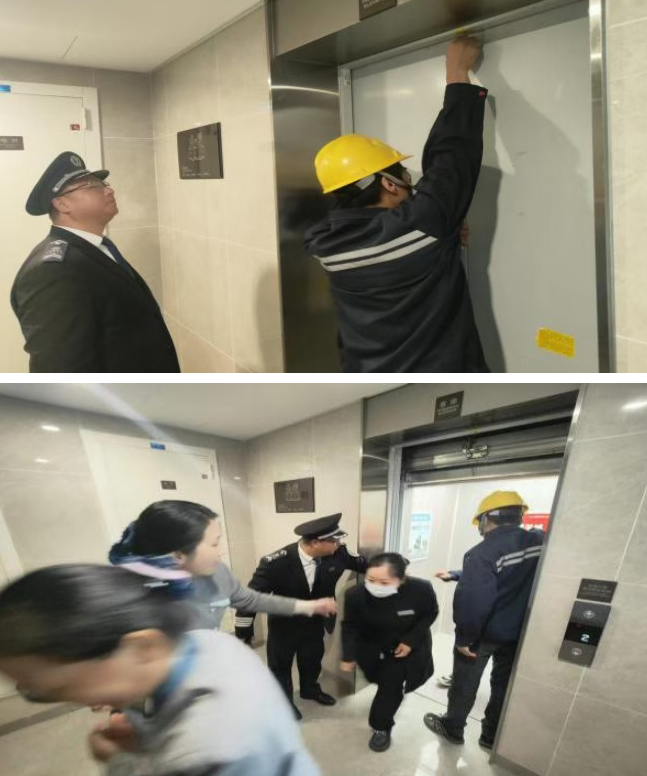 随后进行实战演练。模拟电梯突发故障困人场景,被困人员按所学知识及时呼救。招商积余雍江国际物业服务中心应急小组迅速响应,第一时间赶到现场,安抚被困人员情绪,按照规范流程展开救援,从切断电源到盘车松闸,再到解救被困人员,整个过程有条不紊。