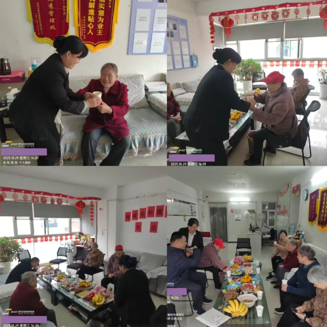 各小区活动现场设置健康义诊、套圈、健康养生讲座、便民服务等许多特色活动。义诊区为老年人提供血压测量、慢性病咨询、用药指导等服务,细致解答居民健康疑问;套圈活动,居民们踊跃参与,欢声笑语不断,丰富了精神文化生活。此次活动通过精准对接老年群体需求,一盘盘精心准备的点心水果,一杯杯爱意浓浓的姜茶,一份份贴心的小礼物,切实提升了业主的幸福感与归属感。