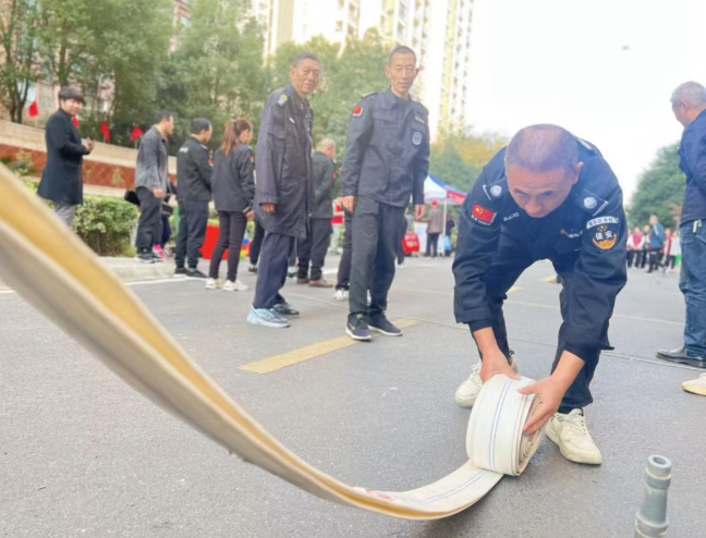 祥龙·泰然居小区以“以赛促练,以练促优”为主题组织开展了消防竞赛,小区各岗位工作人员与承租家庭分组参赛,围绕消防水带操作、灭火器使用等项目进行比拼,通过实战化演练,夯实应急处置基础。