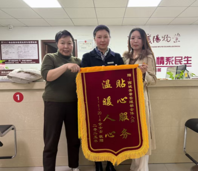 “大半夜还这么负责,真是帮了我们大忙!太感谢你们了!”11月13日,襄阳市物业管理有限公司所辖西城秀景小区,收到了承租户金女士送来的一面印着“贴心服务,温暖人心”的锦旗,背后是一段凌晨时分的温情守护。