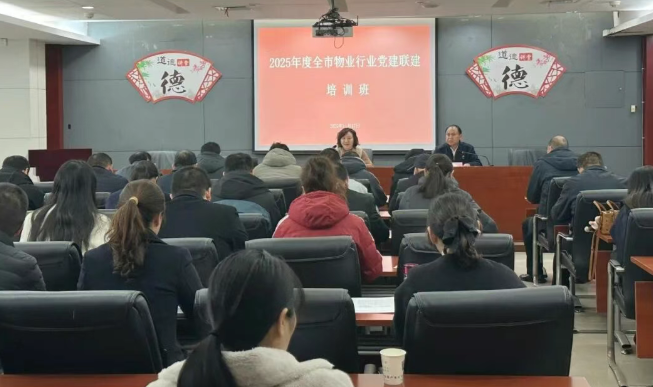 11月17日,市物业行业党委举办2025年度全市物业行业党建联建培训班,各县(市、区)物业行业党委负责人、直属党组织书记及党建指导员代表等60余人参会。会议由市物业行业党委纪检委员、市物协秘书长柳政权主持。