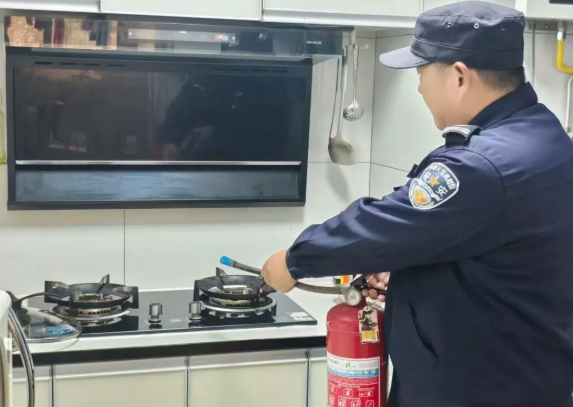 (一)“巡逻岗,速到X号楼X层X室,发现火情!”对讲机传来急促指令,巡逻岗队员立即携带两具灭火器火速赶到。经查看,业主家中油烟机着火,队员们凭借训练经验,熟练操作灭火器对准火源扑救,短时间内成功控制火势。
