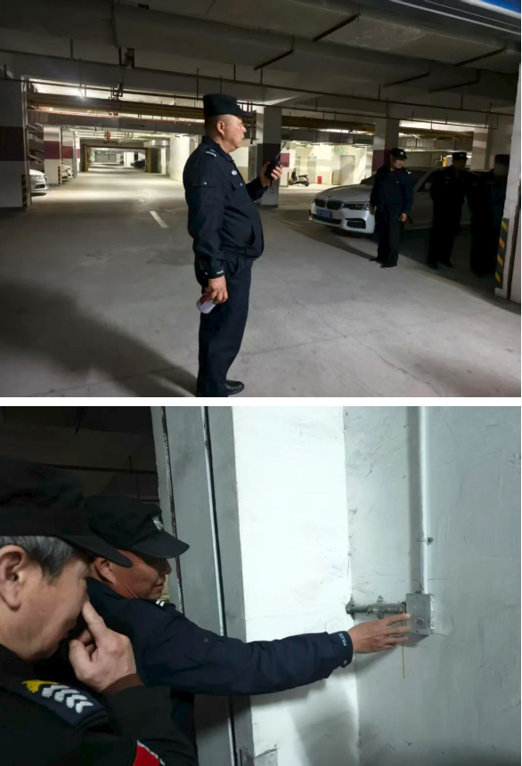 (二)地下室突发火情,监控室立即通知巡逻岗。队员迅速佩戴防护装备到场查看:若为小火,立即用灭火器或消防栓扑救;若火势较大,立即撤离并关闭防火卷帘门阻断蔓延,同时第一时间拨打119.通过广播、业主群通知住户。住户们闻讯后,沿安全通道有序撤离,现场秩序井然,有效避免拥挤踩踏风险。