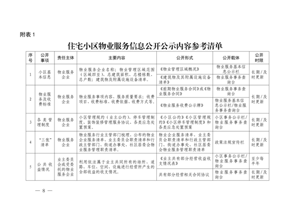 为进一步规范全省物业服务信息公示公开,保障业主知情权、参与权、监督权,依法维护物业服务管理各方主体合法权益,建设阳光互信的市场环境,推动物业服务行业管理水平整体提升,湖北省住房和城乡建设厅研究制定《湖北省住宅小区物业服务信息公开工作指引》,具体内容如下: