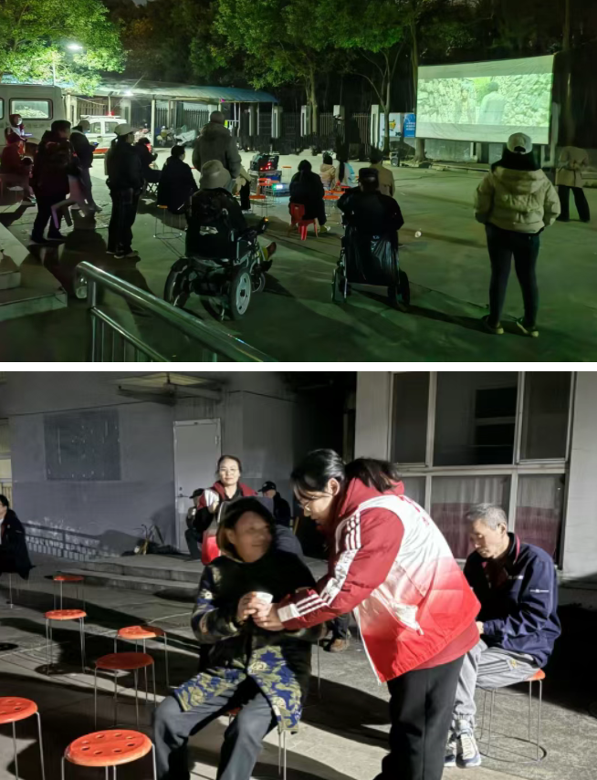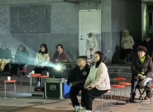 为确保活动暖心有序,红管家不仅提前细致筹备,搭建幕布、调试设备,保障观影质感,还在放映中为观影的承租家庭提供热饮驱寒,全方位做好服务保障。