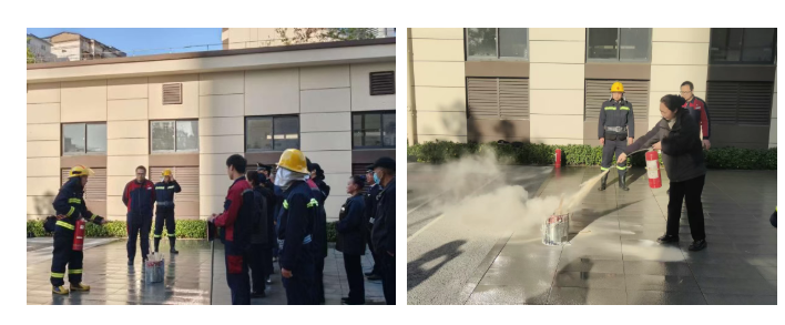 演练结束,消防官兵现场演练如何使用灭火器,提、拔、握、压四步操作法。并结合建筑材料现场实操,让员工更加真实的学到灭火器的使用方法,增强员工消防安全意识。