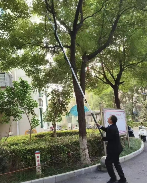2025年11月,彩生活襄阳分公司江山馨园小区内一派忙碌的景象,物业经理身着工作服、手持修枝工具,正带领项目团队对园区内枝叶过密的行道树进行集中修剪。小区里郁郁葱葱生长着许多高大树木。高大茂密的枝叶既遮挡阳光,又造成对部分业主生活困扰,同时也存在一定的安全隐患。