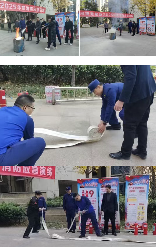 11月是全国消防宣传月,山河锦秀围绕“全民消防、生命至上”主题,通过实战演练提升全员消防意识与自救互救能力,山河锦秀物业携手旭东路社区、樊城区消防支队在天骄广场小区开展消防安全演练活动,让参与演练的业主和员工能够深入了解消防安全知识,掌握应对火灾的实用技能。