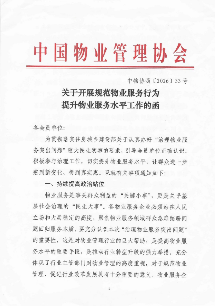 关于开展规范物业服务行为提升物业服务水平工作的函