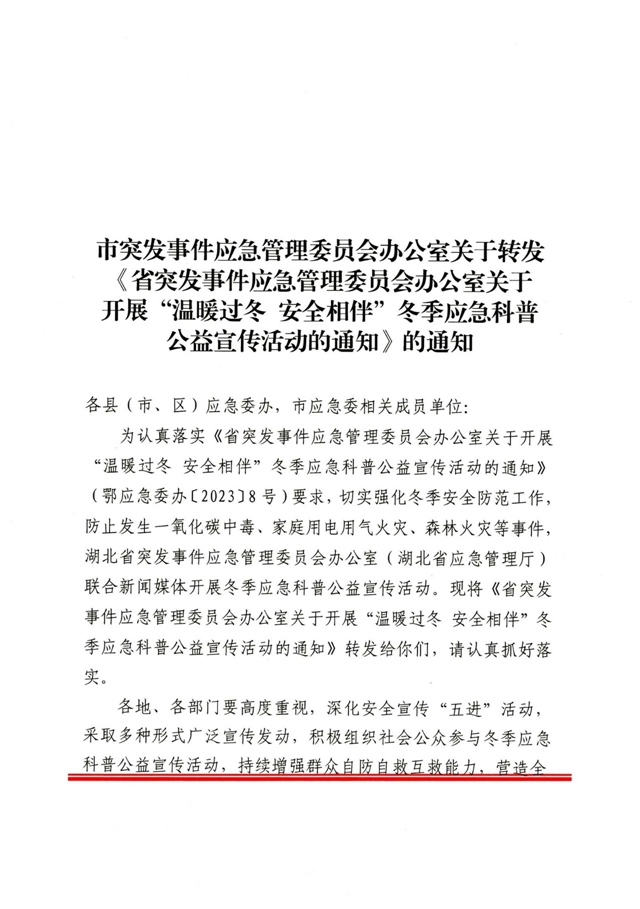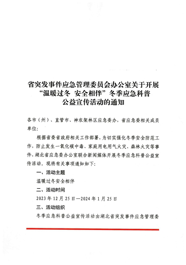 省突发事件应急管理委员会办公室关于开展“温暖过冬 安全相伴”冬季应急科普公益宣传活动的通知