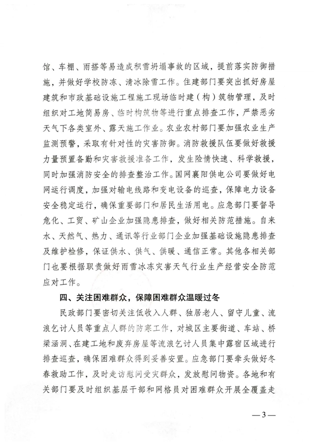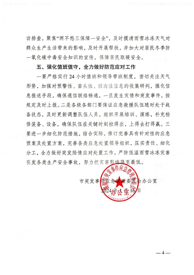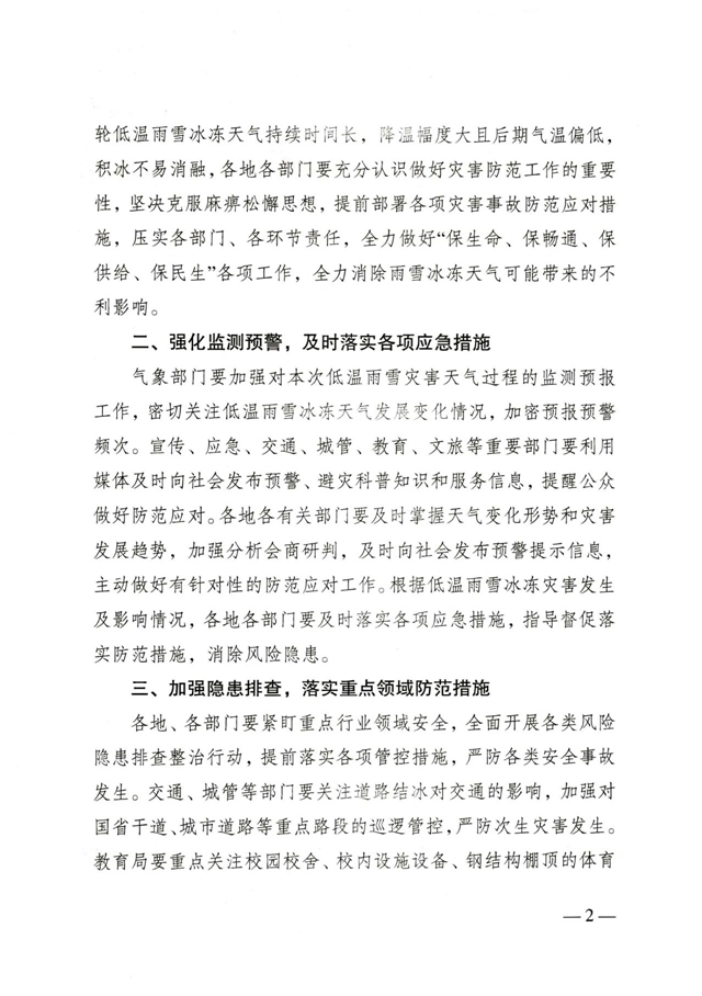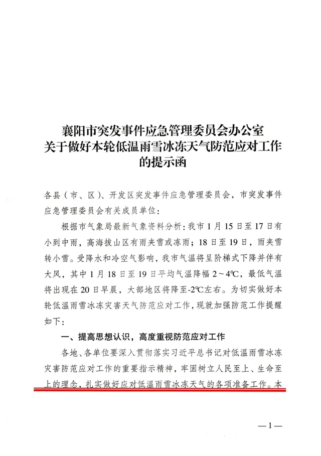 关于做好本轮低温雨雪冰冻天气防范应对工作的提示函
